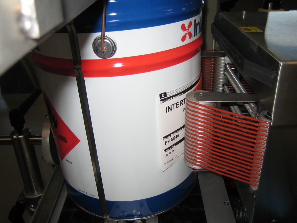 Når der skal påsættes etiketter på større, let koniske produkter fra 2,5l til 20l beholdere.